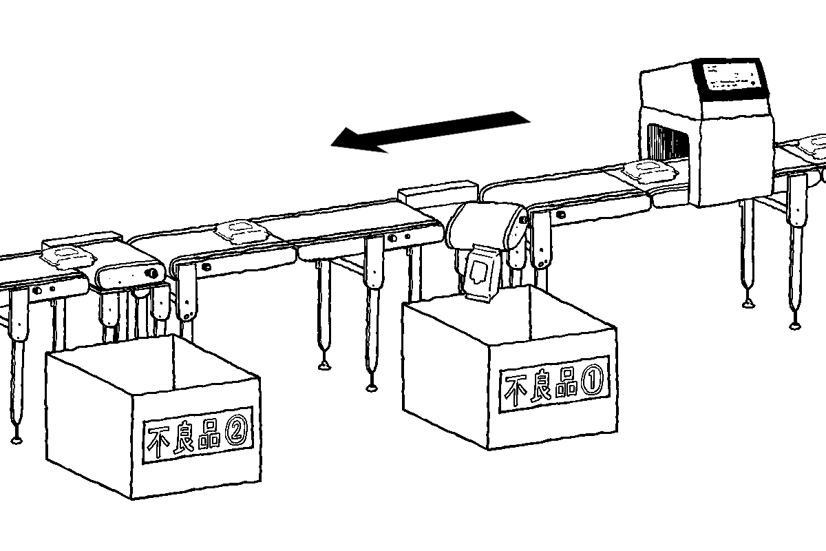 「裁断ミス」と「金属混入」2つのNGパターンを正確に識別し、それぞれの排出位置へ正確に誘導します。